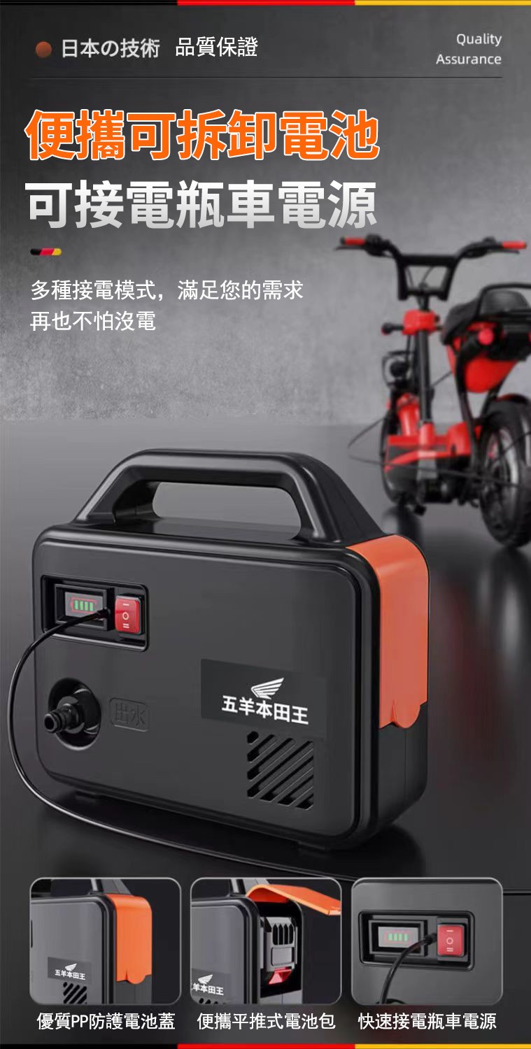 20分鐘前「日本進口」五羊本田王鋰電充電式抽水泵 全新一機升級,澆菜/打藥/洗車/灌溉輕鬆搞定‼️ 十年用不壞 - 【X15節雙電】電量顯示 强续航6小時【螺旋聚压大水流】+10米管