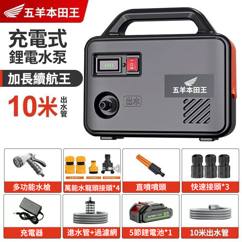 5分鐘前「日本進口」五羊本田王鋰電充電式抽水泵 全新一機升級,澆菜/打藥/洗車/灌溉輕鬆搞定‼️ 十年用不壞 - 【X5節單電】電量顯示 强续航1小時【螺旋聚压大水流】+10米管