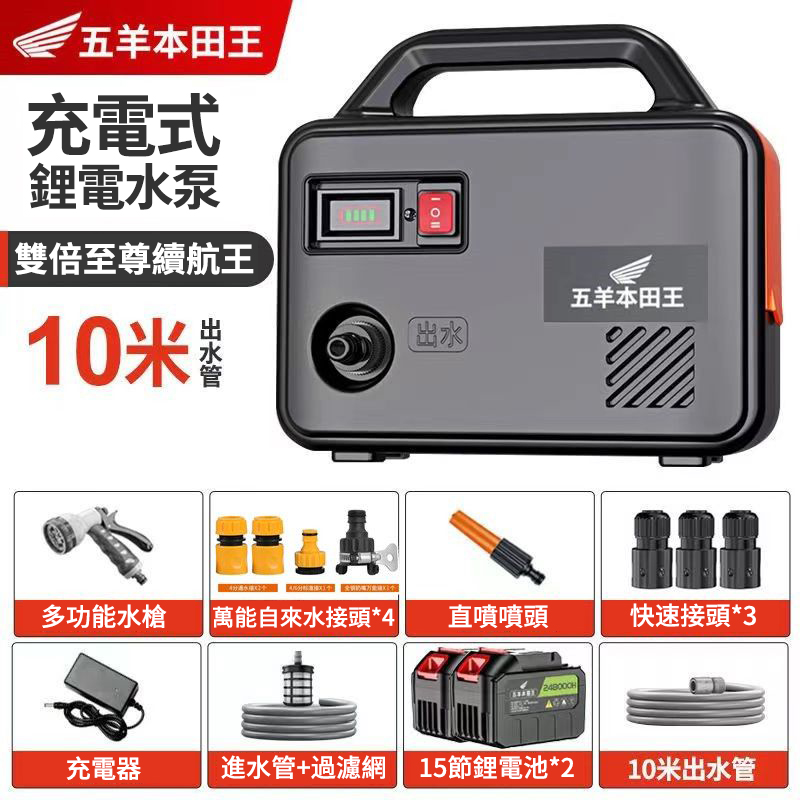 2分鐘前「日本進口」五羊本田王鋰電充電式抽水泵 全新一機升級,澆菜/打藥/洗車/灌溉輕鬆搞定‼️ 十年用不壞 - 【X15節雙電】電量顯示 强续航6小時【螺旋聚压大水流】+10米管