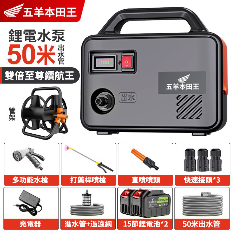 2分鐘前「日本進口」五羊本田王鋰電充電式抽水泵 全新一機升級,澆菜/打藥/洗車/灌溉輕鬆搞定‼️ 十年用不壞 - 【X15節雙電】電量顯示 强续航6小時【螺旋聚压大水流】+50米管+管架
