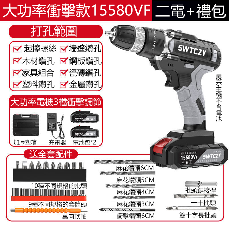 5分鐘前德國大功率 雙速衝擊鋰電鑽 純銅電機 無極變速 雙軸承設計 十年換新 - 進口衝擊15580VF塑箱2電+豪禮 NT$1980