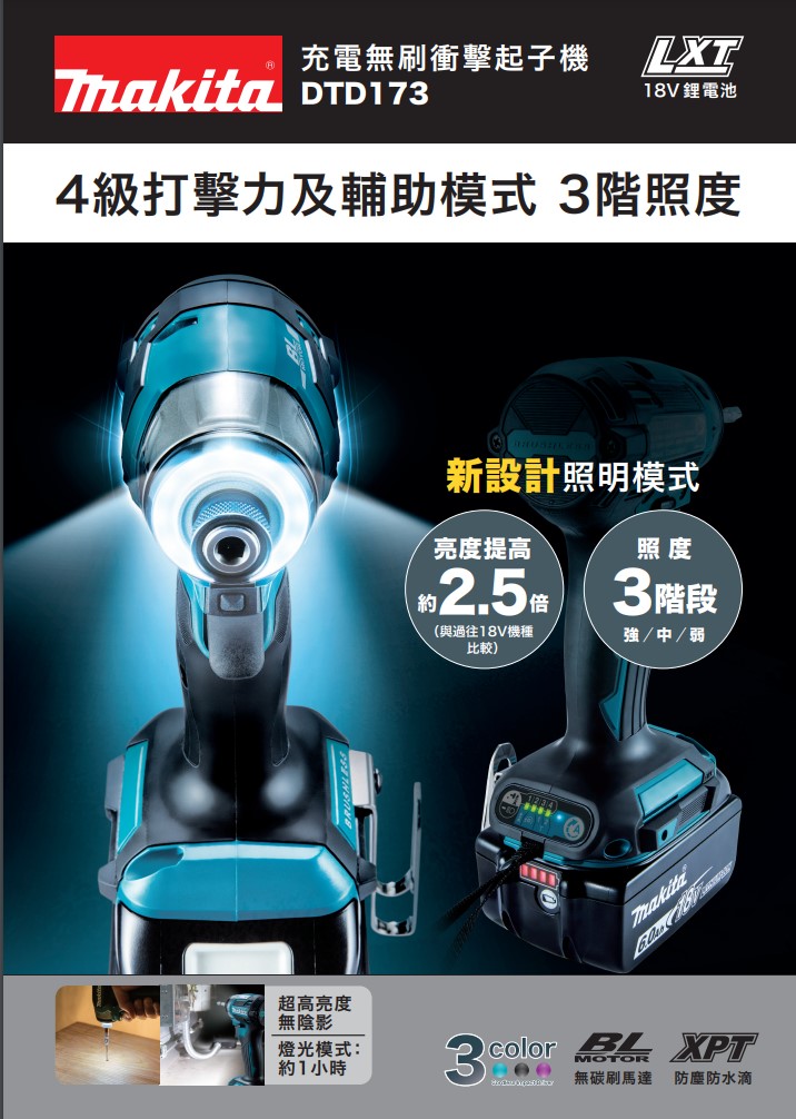 12分鐘前台灣現貨【MAKITA 牧田】 18V鋰電無刷衝擊起子機(DTD173) 日本製 強勁動力 - DTD173【1電1充+塑箱+鑽頭配備】
