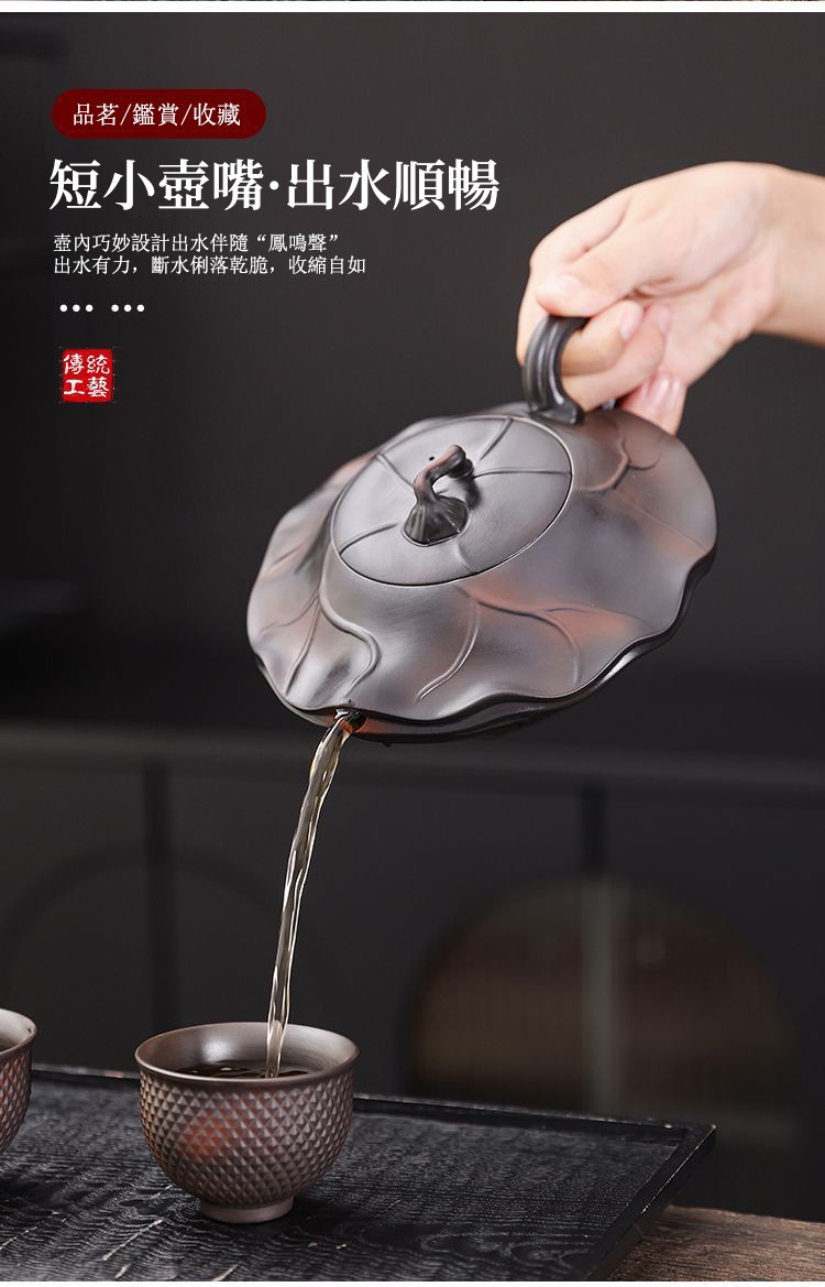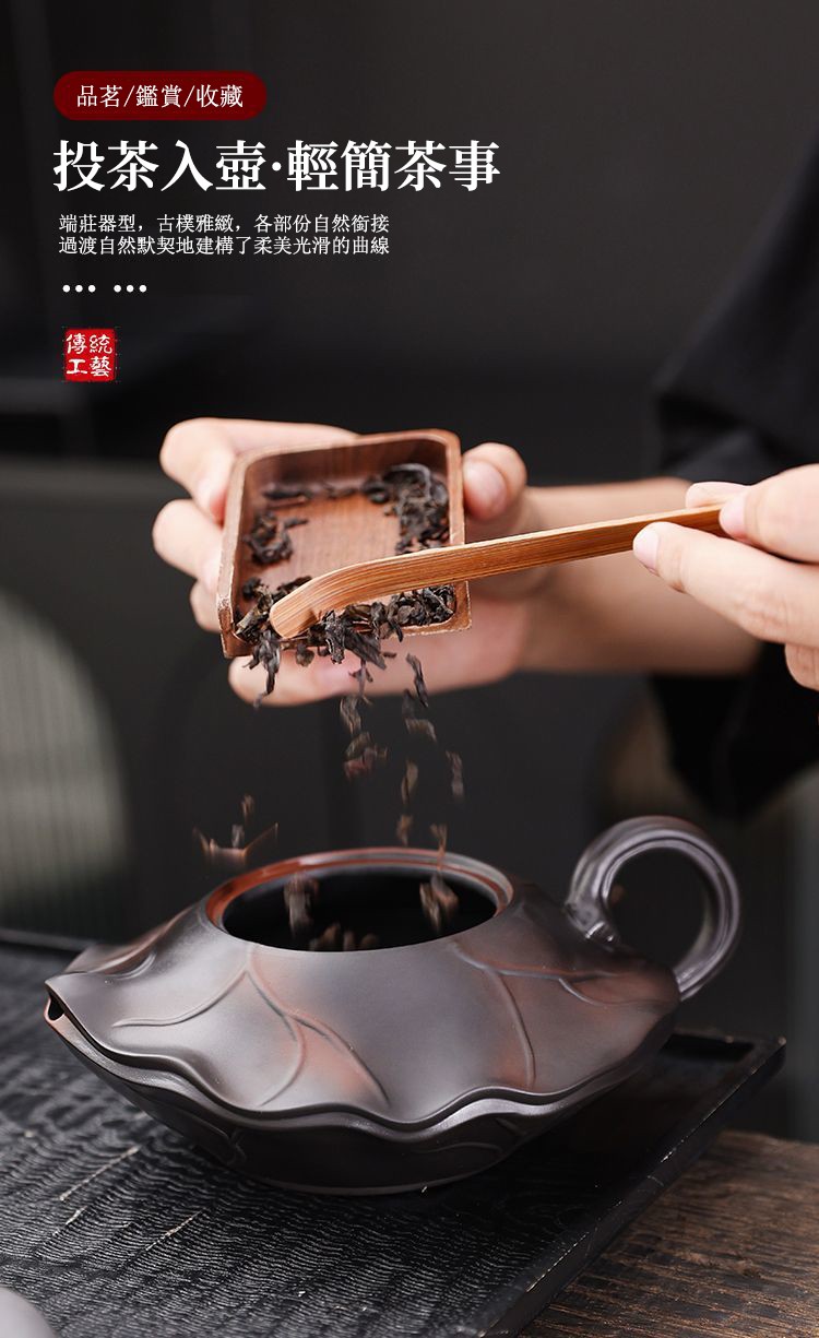 25分鐘前正宗原礦紫陶浮雕富甲天下荷韻 • 荷花壺┃350cc大容量紫砂鳳鳴壺 純手工大師范明偉匠心之作,泡茶更醇香! - 紫陶富甲天下荷葉鳳鳴壺