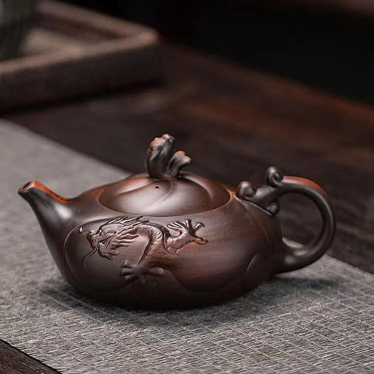 25分鐘前正宗原礦紫陶浮雕富甲天下荷韻 • 荷花壺┃350cc大容量紫砂鳳鳴壺 純手工大師范明偉匠心之作,泡茶更醇香! - 紫陶魚化龍鳳鳴壺