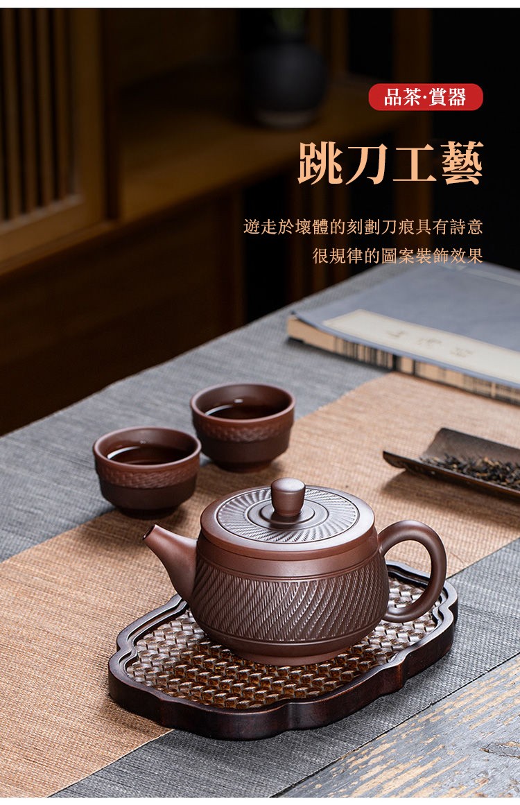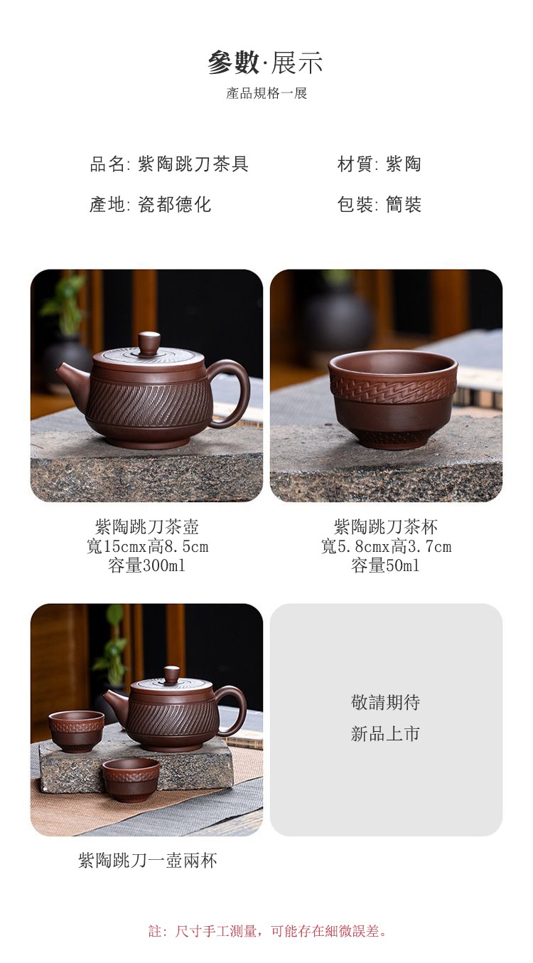 7分鐘前經典傳承・匠心打造|【大師純手工紫陶鳳鳴壺】復古跳刀紋漢瓦壺(一壺兩杯)・黃金大容量300cc + 球孔過濾,鳴音設計顯格調 - 紫陶跳刀壺【單壺】