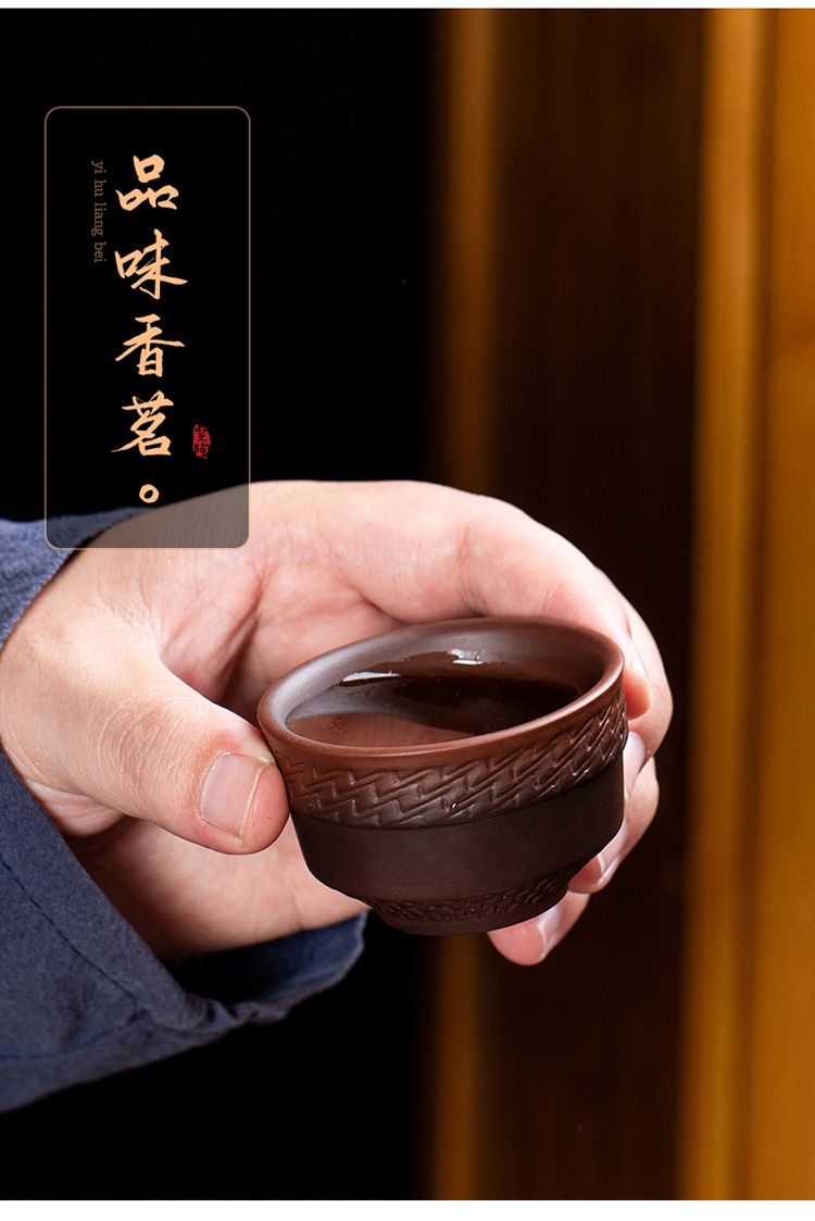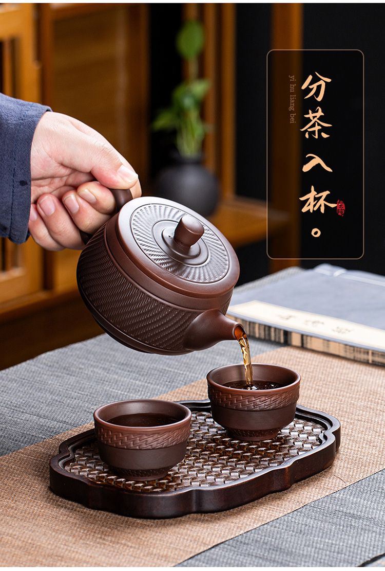 7分鐘前經典傳承・匠心打造|【大師純手工紫陶鳳鳴壺】復古跳刀紋漢瓦壺(一壺兩杯)・黃金大容量300cc + 球孔過濾,鳴音設計顯格調 - 紫陶漢瓦壺【一壺兩杯】