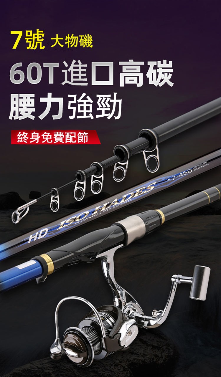 4分鐘前【日本進口,送超級大禮包】哈迪斯19調7號手海兩用磯釣竿 - 19釣6.3米(21尺)竿[金屬漁輪+禮包]