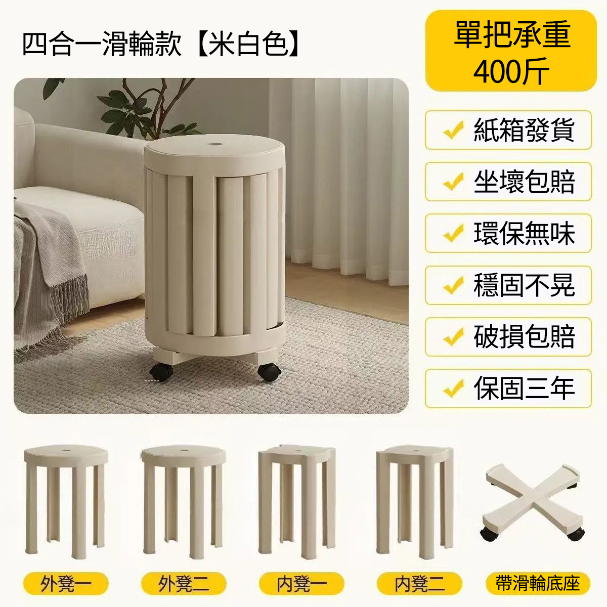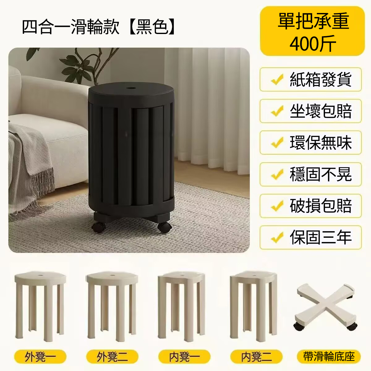 20分鐘前全實木可疊放凳 升級6入組|多功能茶几椅子 二合一設計 MIT台灣製造|茶几+椅子一次搞定 - 【4合1】免安裝-全實木加厚-可疊放【兩大+兩小】底托+萬向輪---NT$4760