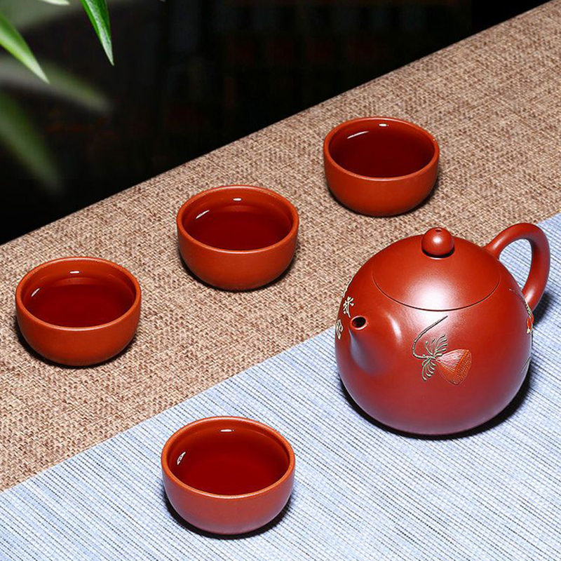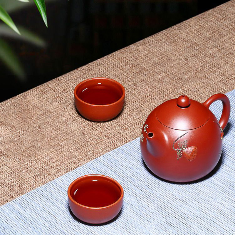經典傳承・匠心打造|【大師純手工紫陶鳳鳴壺】復古跳刀紋漢瓦壺(一壺兩杯)・黃金大容量300cc + 球孔過濾,鳴音設計顯格調