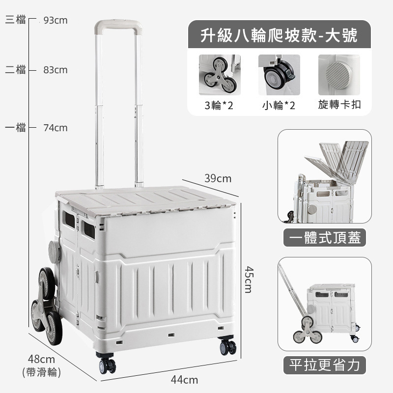 7分鐘前【折疊購物車】買菜購物免提重,爬樓搬運超省力!大容量好收納,露營野餐隨拉隨走,居家外出都好用! - 【八輪爬坡款(大號)】 加厚帶蓋 灰色 NT$2390