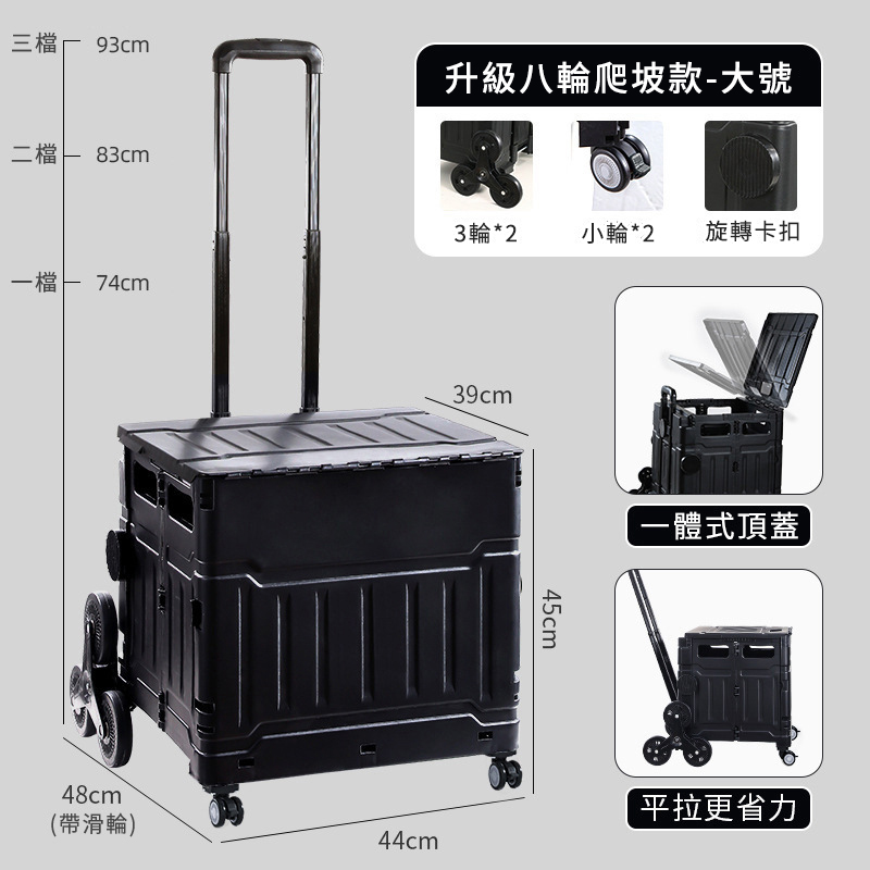 11分鐘前【折疊購物車】買菜購物免提重,爬樓搬運超省力!大容量好收納,露營野餐隨拉隨走,居家外出都好用! - 【八輪爬坡款(大號)】 加厚帶蓋 黑色 NT$2390