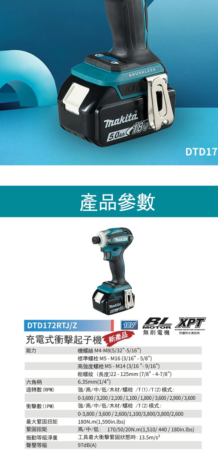 4分鐘前日本東京五金工具展【特價500組】MAKITA 牧田18V鋰電無刷衝擊起子機 強勁動力 不滿意包退換 - DTD172【2電1充+塑箱+鑽頭配備】--NT$2780