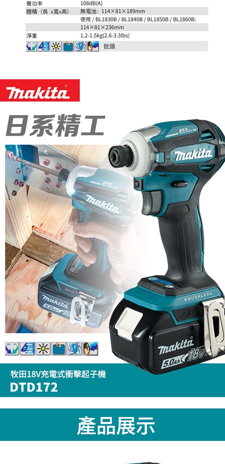 20分鐘前日本東京五金工具展【特價500組】MAKITA 牧田18V鋰電無刷衝擊起子機 強勁動力 不滿意包退換 - DTD172【2電1充+塑箱+鑽頭配備】--NT$2780