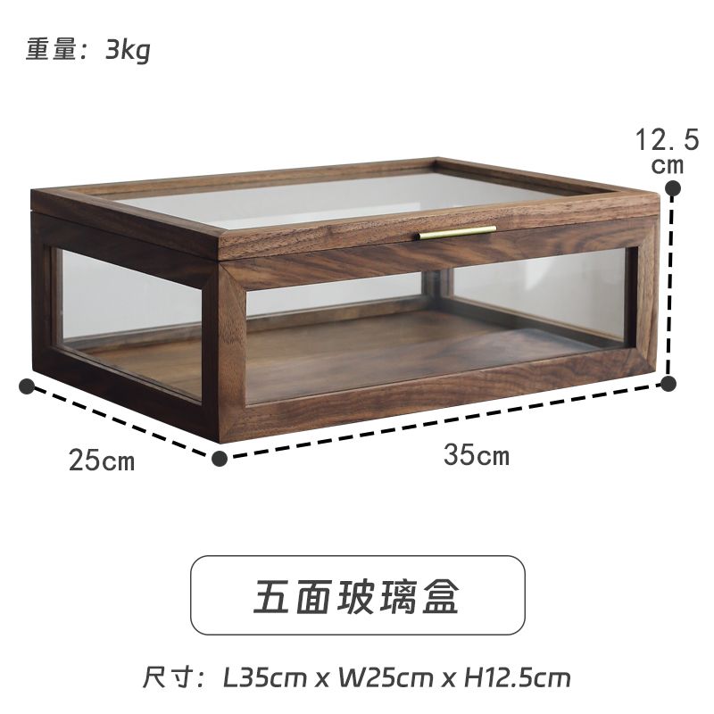 5分鐘前「純手工匠製」胡桃木製作桌面博古架 ,節省空間 大氣典雅的茶具置物架 - 黑胡桃木-五面玻璃盒