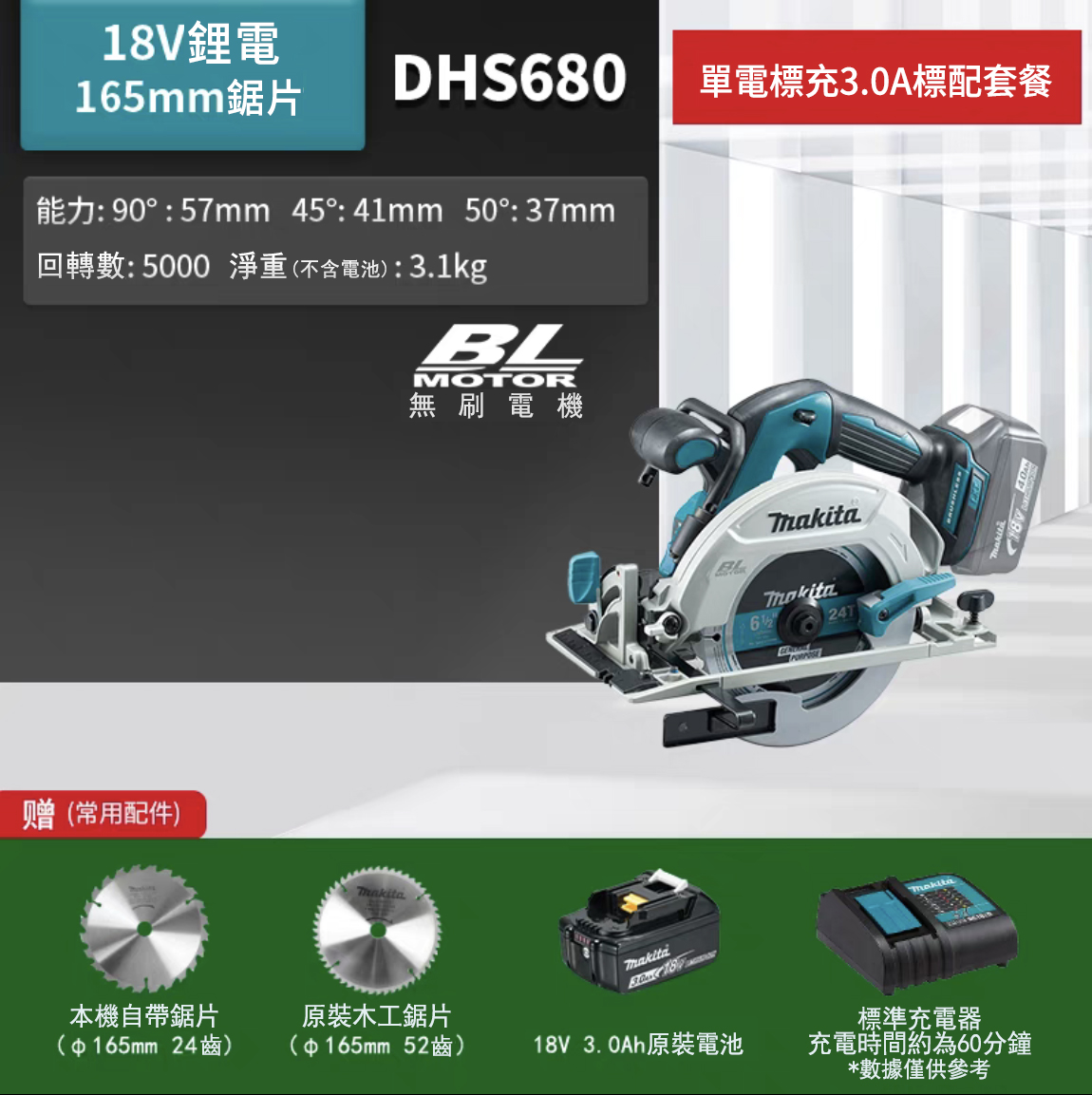 20分鐘前「牧田/Makita」DHS680 18V 4寸、7寸 多功能鋰電園鋸 大容量鋰電池 馬力強勁切割不卡殼 - DHS680【7寸】單電3.0Ah電池+兩鋸片