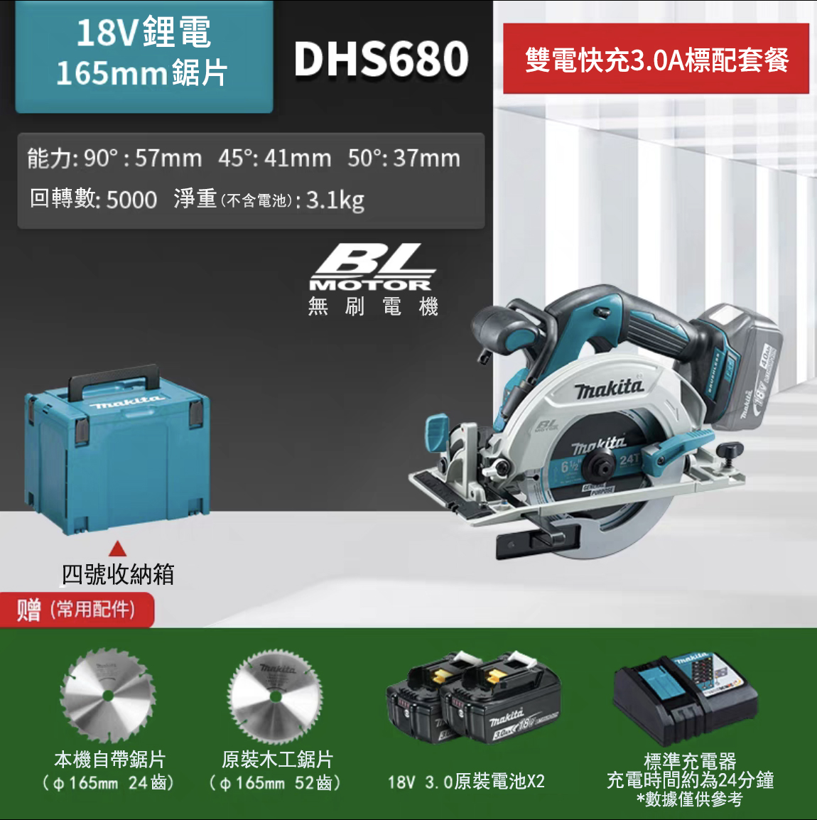 20分鐘前「牧田/Makita」DHS680 18V 4寸、7寸 多功能鋰電園鋸 大容量鋰電池 馬力強勁切割不卡殼 - DHS680【4寸】雙電3.0Ah電池+兩鋸片