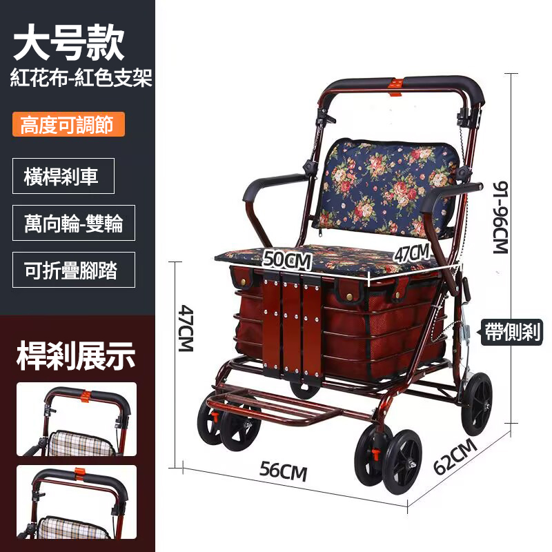4分鐘前可折疊多功能老人代步購物車 超強承重 大容量收納 各種場景都適用,長輩們購物、散步更輕鬆! - 【大號款】老人代步購物車+帶踏板 NT$4050