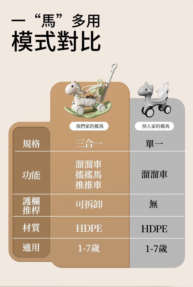 25分鐘前【大減價!大減價!】臺灣熱銷丨1-3週嵗生日禮物搖椅馬兩用搖搖車滑行車 兒童搖搖馬 - 普通輪(摩卡色)靠背+推桿護欄