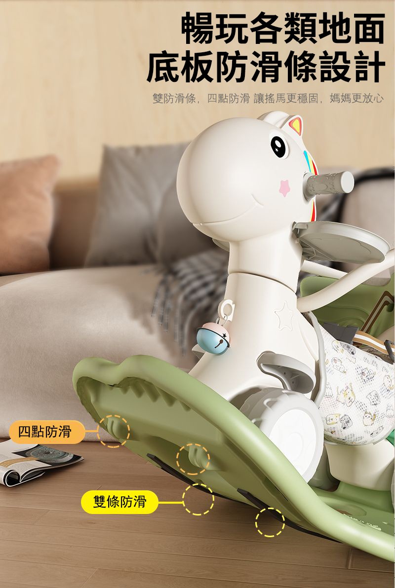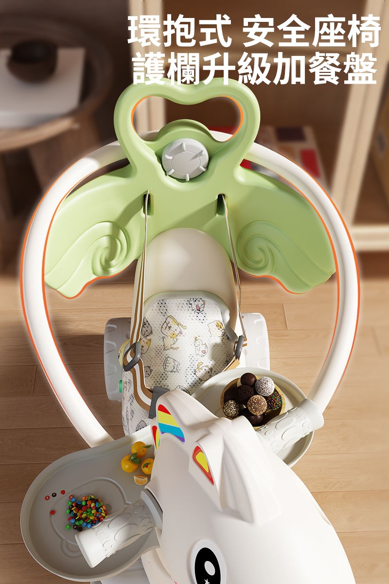 25分鐘前【大減價!大減價!】臺灣熱銷丨1-3週嵗生日禮物搖椅馬兩用搖搖車滑行車 兒童搖搖馬 - 加寬輪(青椰綠)大坐墊+餐盤+靠背+推桿護欄