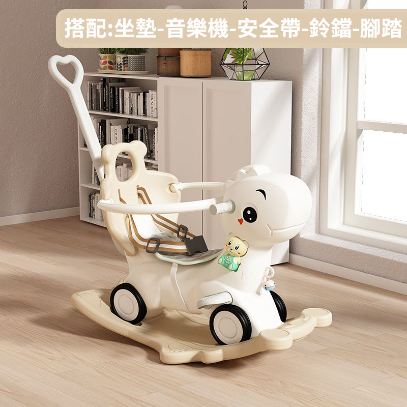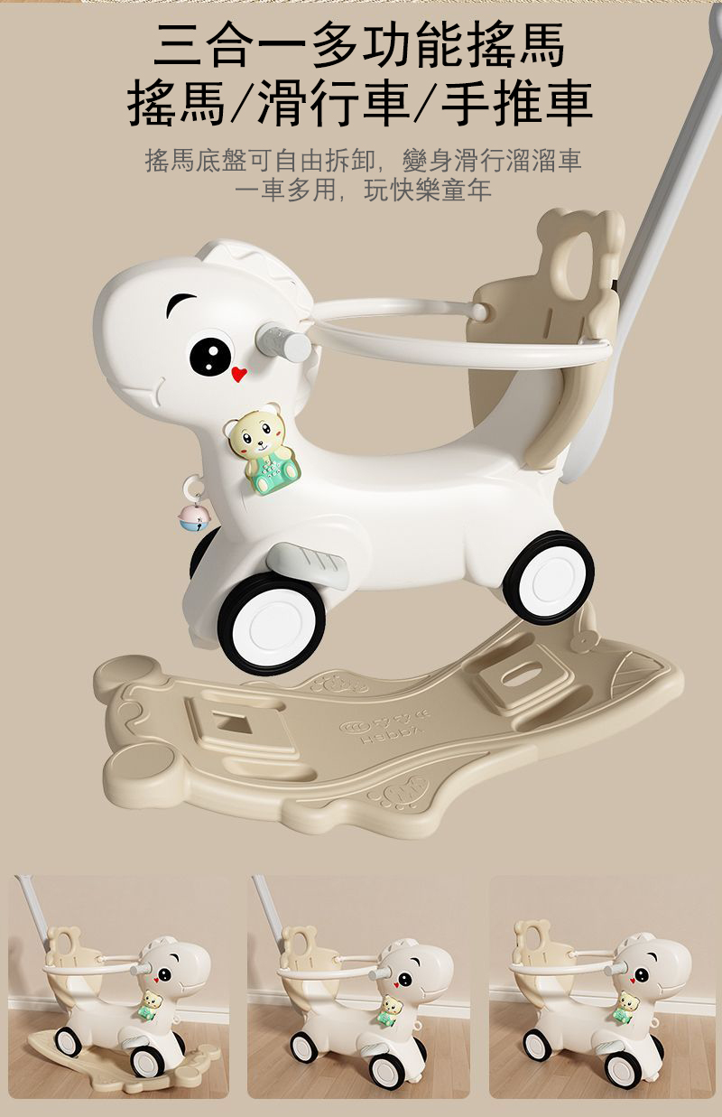 12分鐘前【大減價!大減價!】臺灣熱銷丨1-3週嵗生日禮物搖椅馬兩用搖搖車滑行車 兒童搖搖馬 - 普通輪(摩卡色)靠背+推桿護欄
