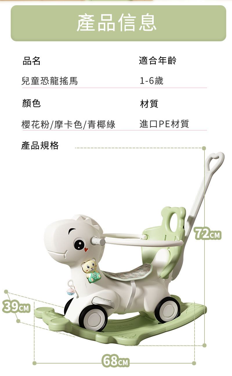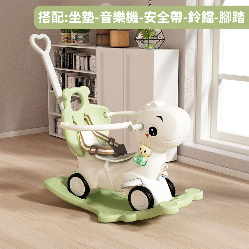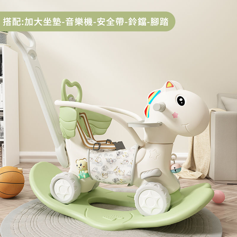 25分鐘前【大減價!大減價!】臺灣熱銷丨1-3週嵗生日禮物搖椅馬兩用搖搖車滑行車 兒童搖搖馬 - 普通輪(青椰綠)靠背+推桿護欄